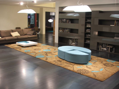 Tappeto realizzato per conto di Novamobili SpA presentato al Salone Internazionale del Mobile 2006 (mod. Hokusai, design IN-ZU,progetto a cura di Arch. Daniela Moioli)